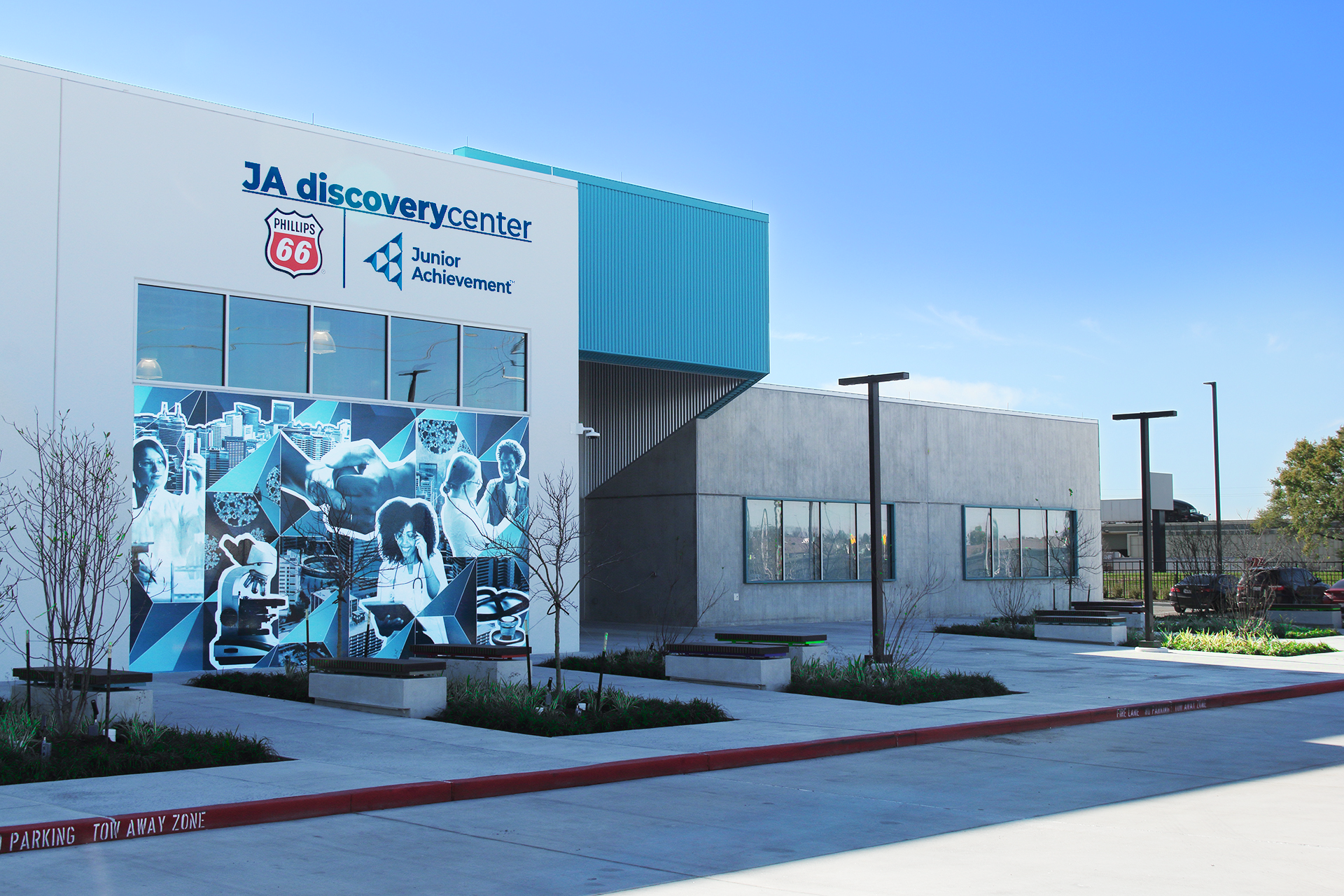 Junior Achievement USA is a non-profit organization that aims to inspire and prepare young people (K-12) to succeed in a global economy. On their new building (the Junior Achievement Discovery Center), JA wanted a series of four supergraphics that displayed career oppurtunities for their students.